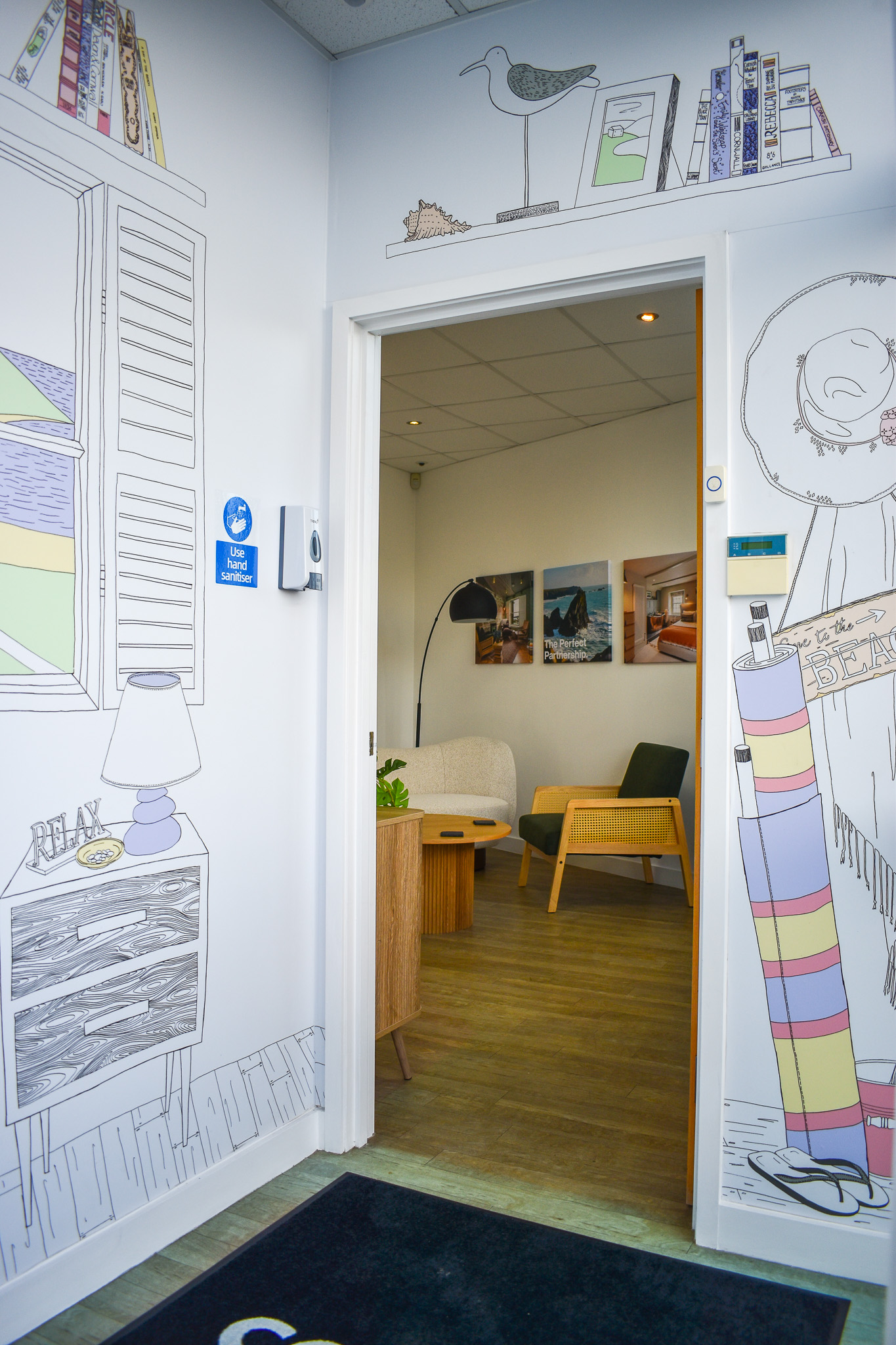 We had a lot of fun designing the welcoming reception area, which we wanted to be a comfortable and informal space. Please join us in Carbis Bay for a coffee and a chat!